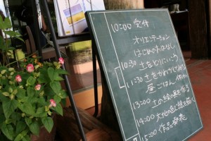 「カフェみたいな森の家」前にさりげなく置かれたボード