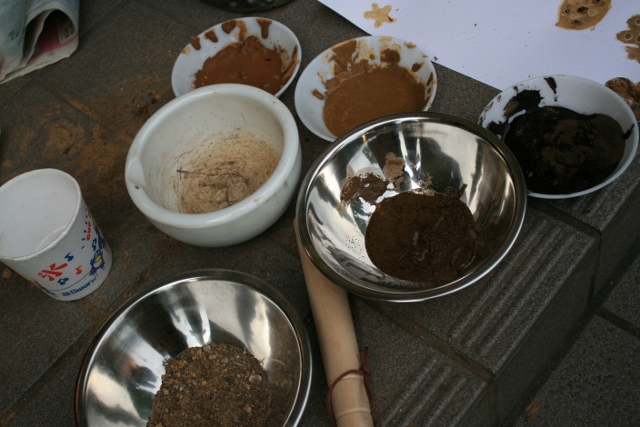土を集めて、その土で絵の具をつくって、絵を描こうっていう、