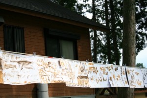 出来上がった小さな芸術家たちの作品が森の中に並べられました