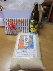 サトシンさんへ小学校からのお土産に、小北農場の「伊佐黄金米」を送ってくださったようなんです♪