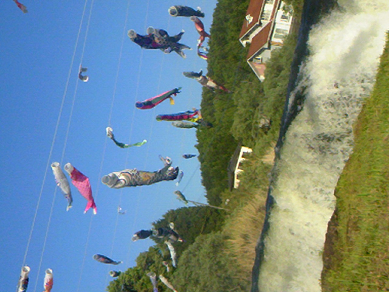風のないときはまるで干物のように垂れ下がっている鯉たちですが(笑)